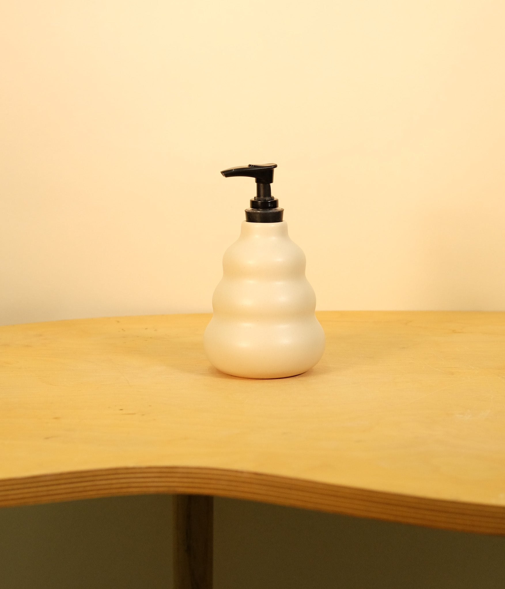 A little soap dispenser! Glazed inside and out with a silky semi-matte glaze. Decidedly not white, a nice creamy neutral.