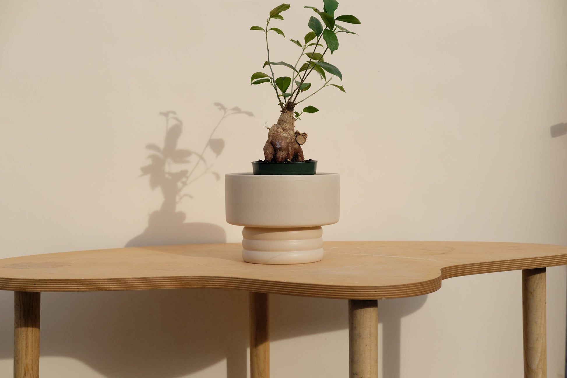 A pedestal style planter thrown in two pieces and trimmed to fit each base perfectly.