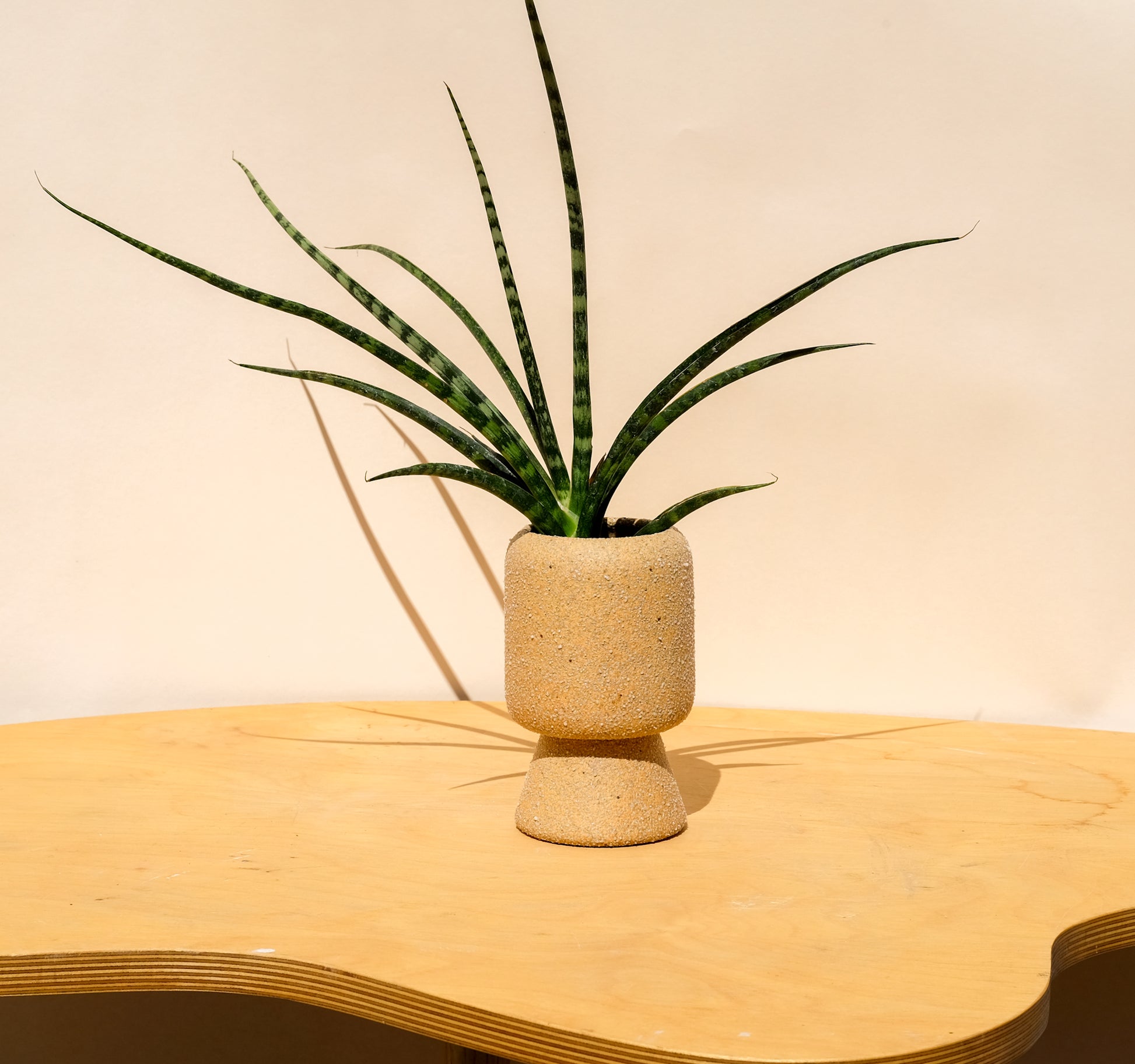 A pedestal style planter thrown in two pieces and trimmed to fit each base perfectly.