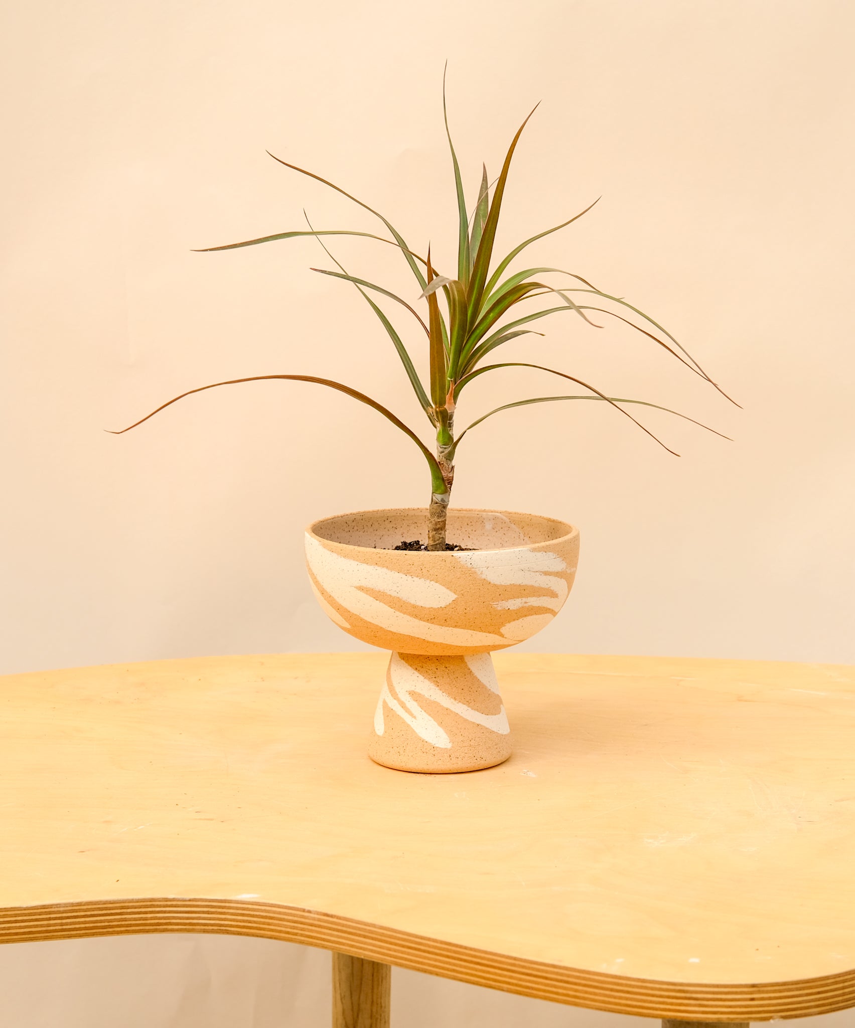 A pedestal style planter thrown in two pieces and trimmed to fit each base perfectly.